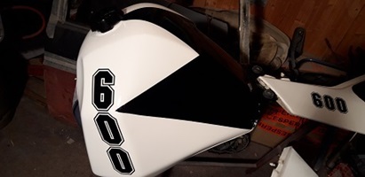 Suzuki DR 600 Bj.1990. Heckumbau mit LED Kennzeichenbeleuchtung,kleine Blinker,Tank umlackiert,Lampenmaske ersetzt,Motor teilweise überholt,Kupplung verstäkrt usw.